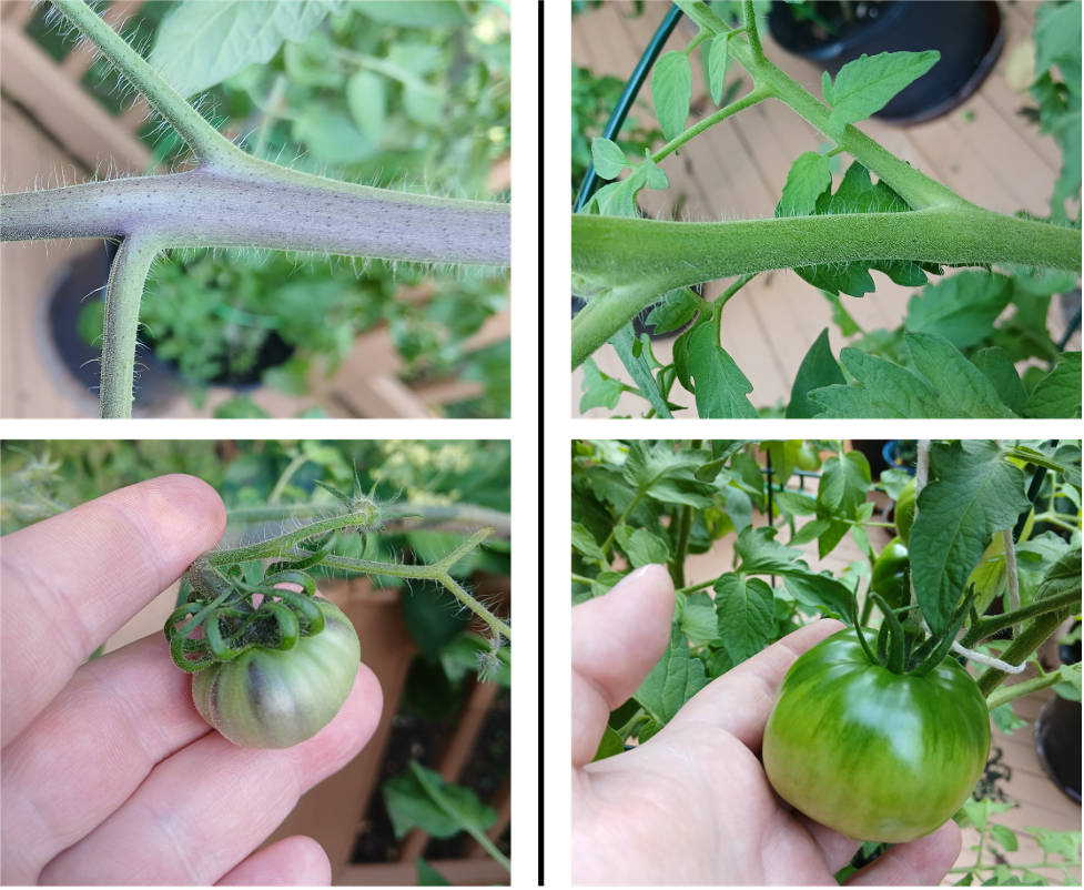Figure 1. Left: An unidentified lithops (possibly L. karasmontana?) plant currently inhabiting our hallway. Right: an ice plant (Mesembryanthem sp.) photographed on the Canary Islands. They don’t look very much alike, do they? Try looking for images of their flowers… that might clear things up for you.