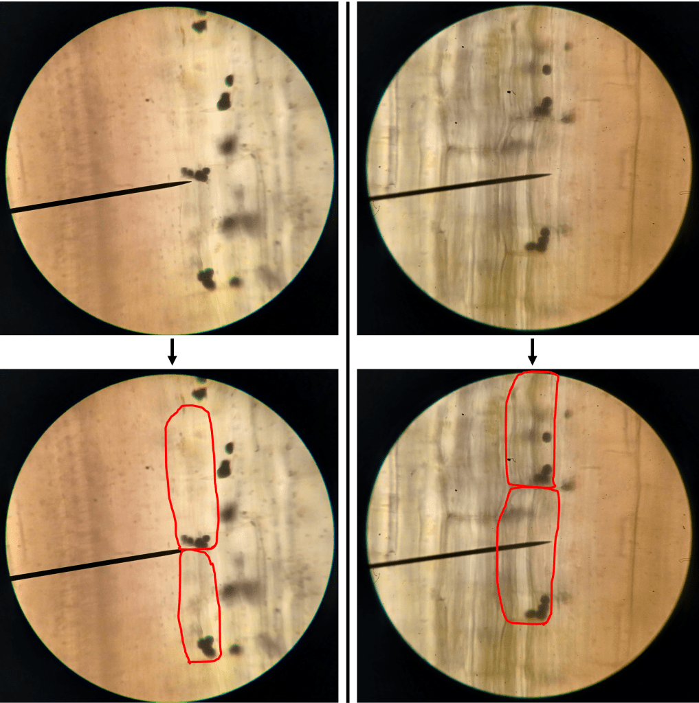 Despite its odd anatomy, when we examine lithops at the cellular level, we can see that it’s really not so different from other plants after all. For example, if we look at the epidermis of the leaf, we can see that it is made up of tightly interlocking epidermal cells punctuated by pores known as stomata (Figure 3). We’ll talk more about those in our next blog post (stay tuned!). But for now, just know that these structures are found in virtually all land plants and are required for gas exchange between the leaf and its environment (O2 and CO2 for respiration and photosynthesis, respectively).