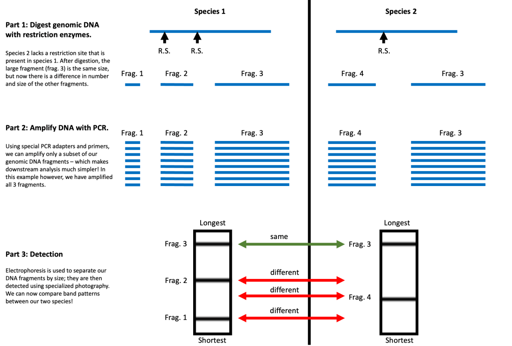 Figure 6. Simplified overview of AFLP marker analysis to assess the genetic similarity between two species.